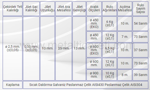 Bütçeye uygun olan puntalı jiletli teller, güneşten etkilenmez. Çevre ve iklim koşullarına oldukça dayanıklıdır. Yapısında bozulma veya aşınma olmaz. Hammaddesi paslanmaz çeliktir. Metre bazında fiyatlandırılır.